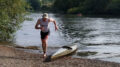 After a false start – where the whole field was brought back, saw the nervous field start and a group of three form with Favorites Steve King, Tom Stead and German Stefan Teichert who strung the field out with a one minute lead at the end of this river swim.