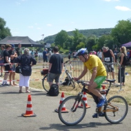 Auch bei der 10,5 km langen Radstrecke musste der Veranstalter wegen neuer Auflagen des Naturschutzes leichte Änderungen vornehmen. Der steile Berg hinauf zur Befreiungshalle war immer noch dabei, bemerkte ein Teilnehmer schmunzelnd.