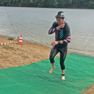 Der nicht zu überhörende Startschuss fiel pünktlich um 9:50 Uhr. Schon nach ca. 24 Minuten kamen unsere ersten Schwimmer aus dem Wasser. Hier ganz vorn Leos Rousavy, Václav Sobotka, dicht gefolgt von Antje Fiebig! Die beste Radzeit des Tages bei den Einzelstartern ging ebenfalls an Leos Rousavy (59:06), bei den Staffelspezialisten benötigte Julian Lind 54:40. Auch beim Paddeln blieb Leos ganz vorn (48:19), nur getoppt von Babak Samaris Staffelzeit von 42:45. Auf den Gesamtplätzen Zwei bis Vier ging es da etwas spannender zu: Antje Fiebig, Lars Koch und Susanne Walter lagen je nach Disziplin eng zusammen!