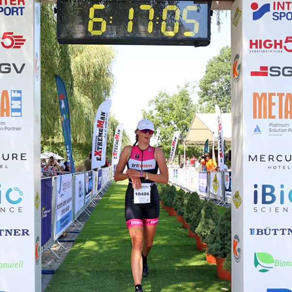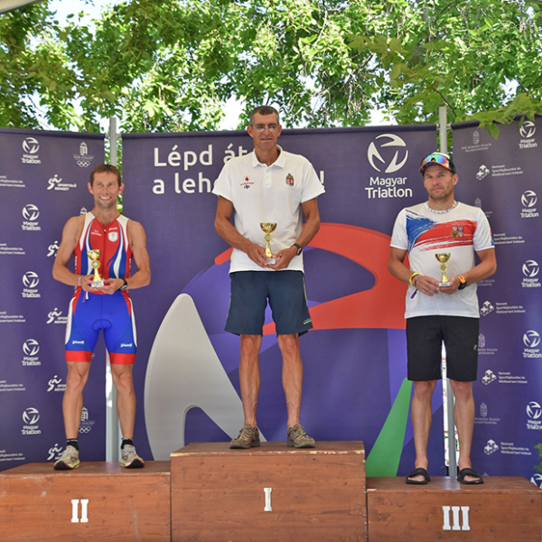 The “boiling” already started in the 2,7 km swimming part in the crystal clear but rather hot – 26 degree water. The start was at 7.30 together with the traditional Ironman so 200 athletes jump into the water at the same time. After some mass incidences in the first hundred meters everybody found his place in the water, quadrathletes mainly in the front groups. The first group (Laurent Martinou-FRA, Ferenc Csima-HUN, Anna Zágorska-POL and Leoš Roušavý-CZE) was come out from the water after 41 minutes and started the 20 km kayak part. Temperature already reached 30 degrees at the kayak start and reached 35 degrees at the finish. Here Zágorska in the women’s race and Csima in the men’s race worked out a big gap against the pursuers. Rousavy overtook Martinou with some minutes. The 62 km bike track was rather flat with only some small “mountains”. Here also the heat was the biggest challenge, but everybody managed to keep his speed. The leaders kept their positions, Martinou overtook Rousavy just before finishing the bike part. The biggest challenge of the day came on the running course. Temperatures reached 40 degrees which influenced the performance of all athletes although there were refreshment stations at every km. Zágorska and Csima managed to keep a stable tempo on the 21 km, but first Rousavy later Martinou suffered heavily from the heat and were loosing tempo.